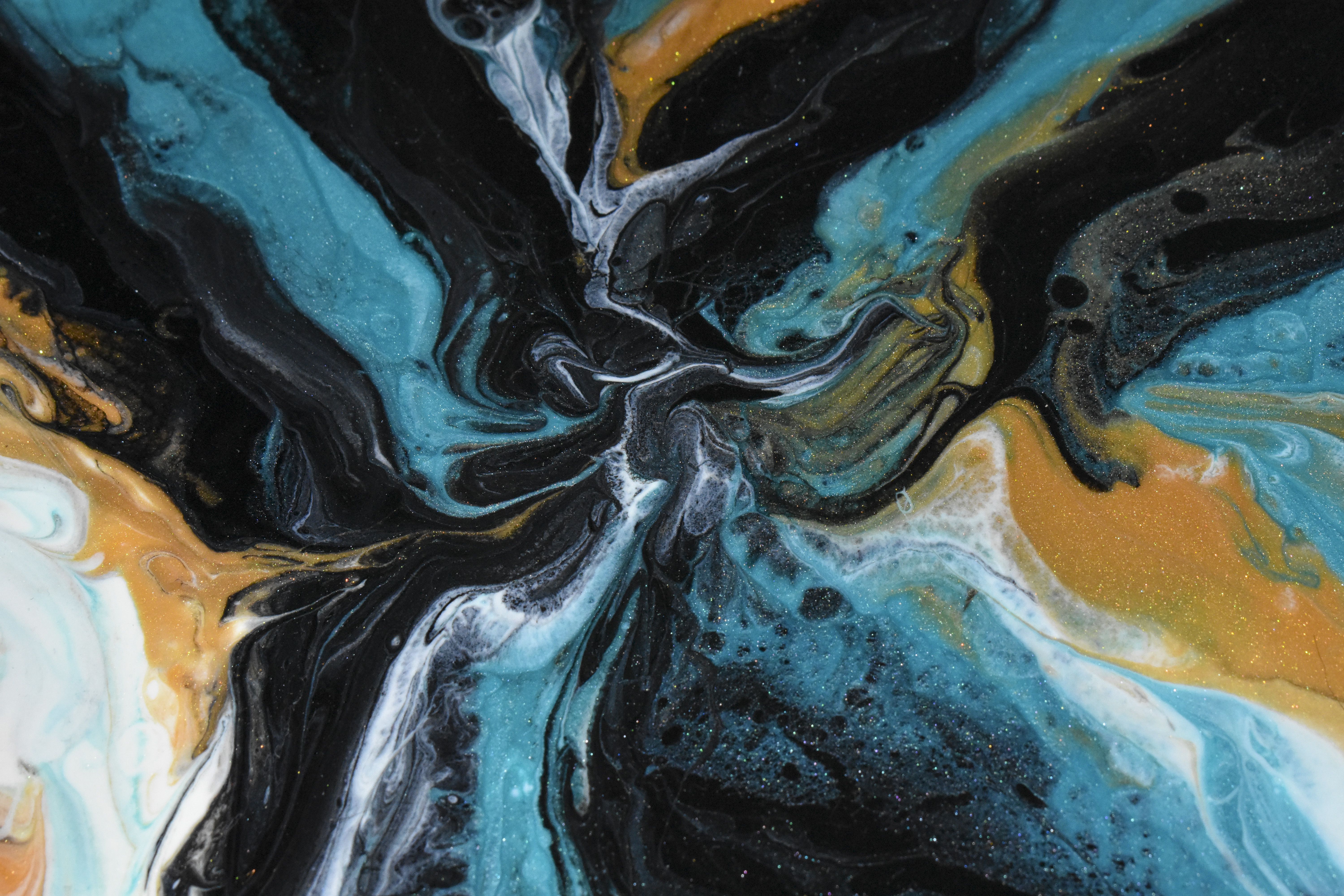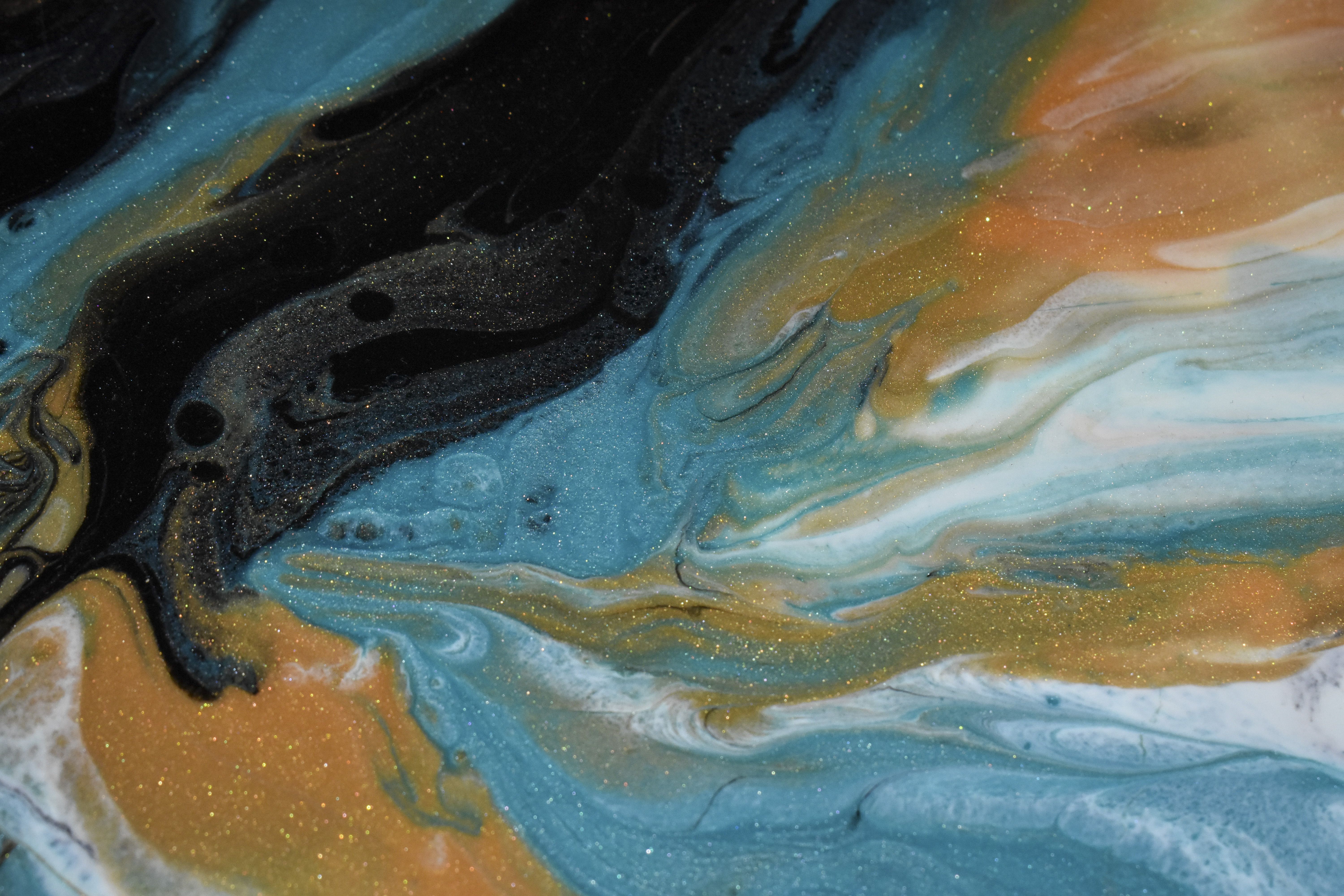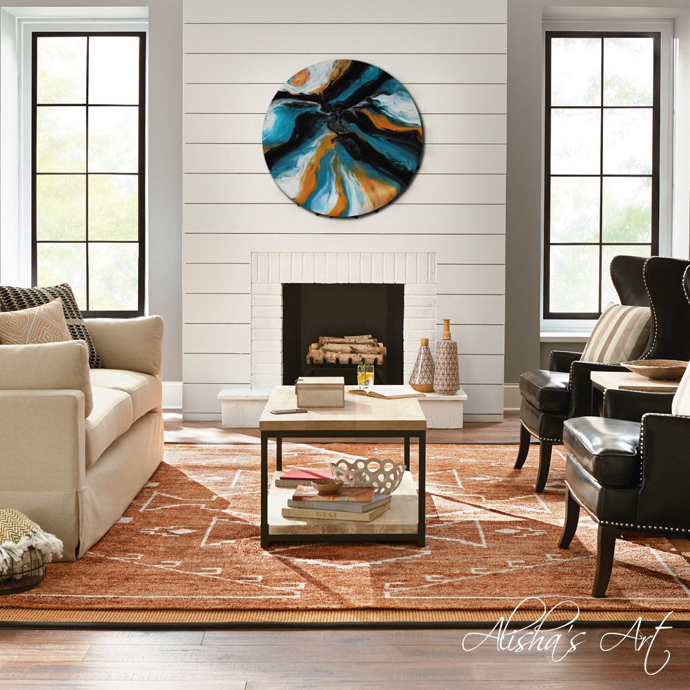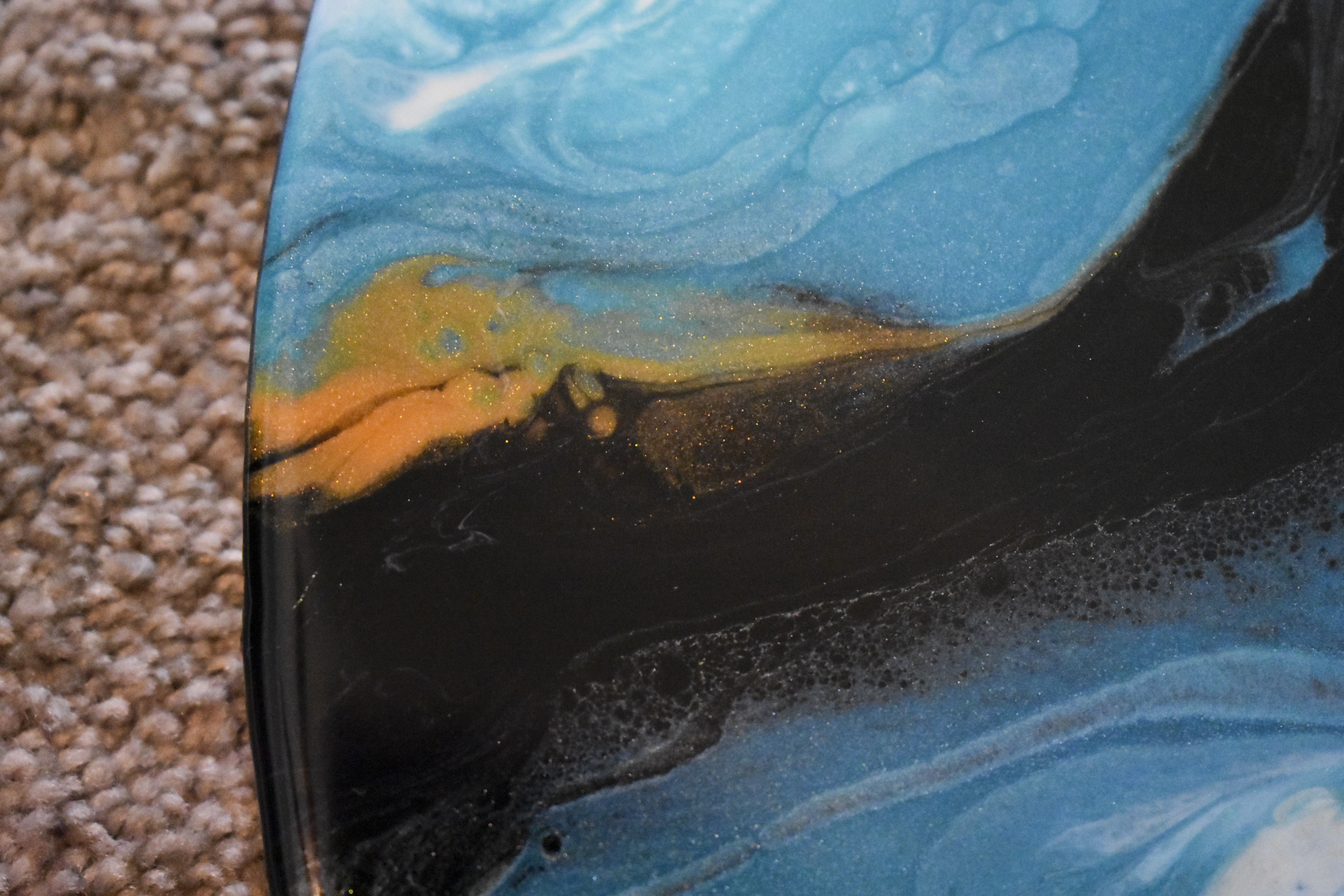 Resin mixed with acrylics on a 16" round canvas. Glass like surface! Resin is an amazing medium to work with. It creates beautiful details when torching it. You can also use additives such as acetone and denautured alcohol to the mix and that creates other details. It's amazing I just love working with it!