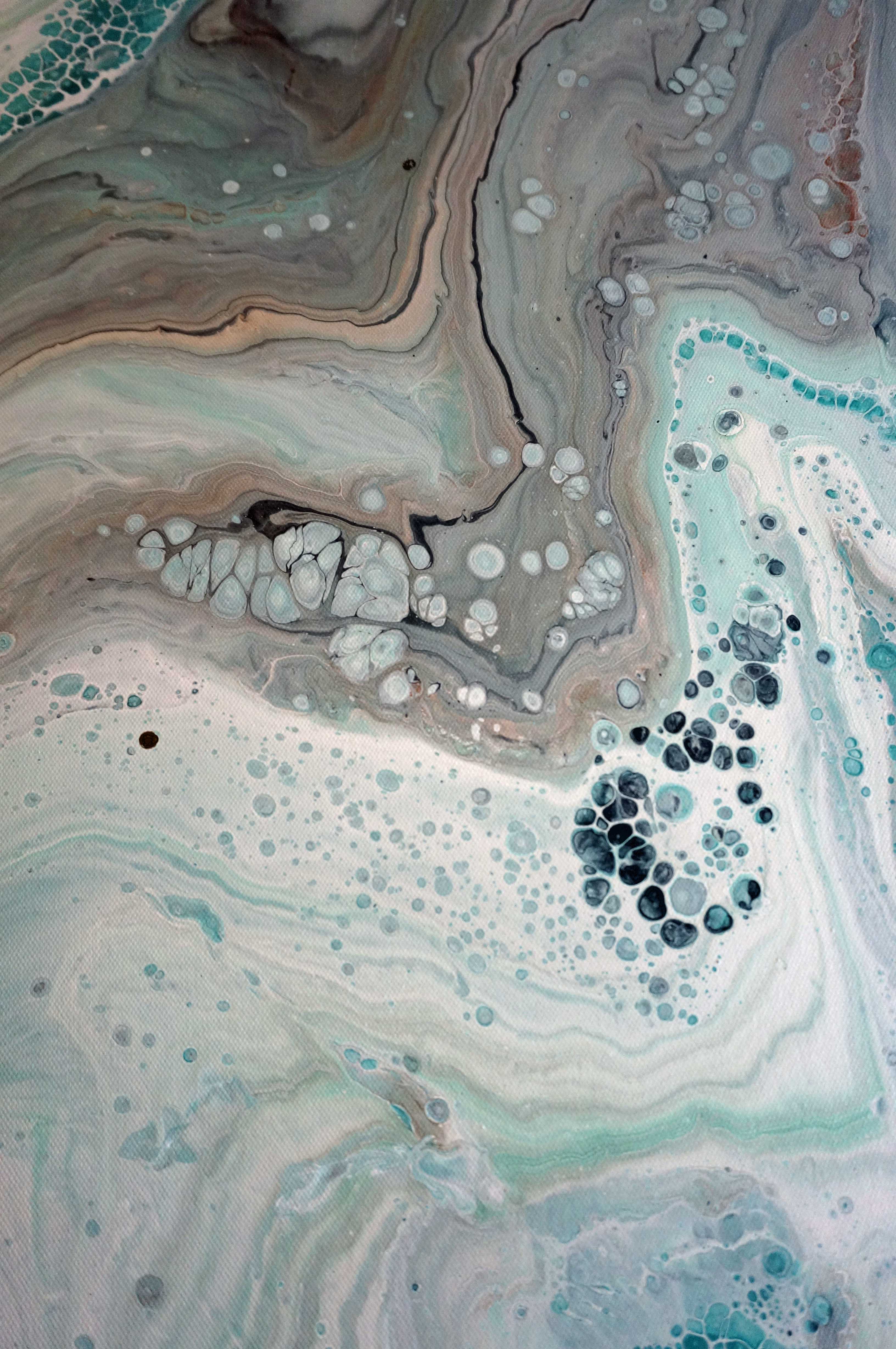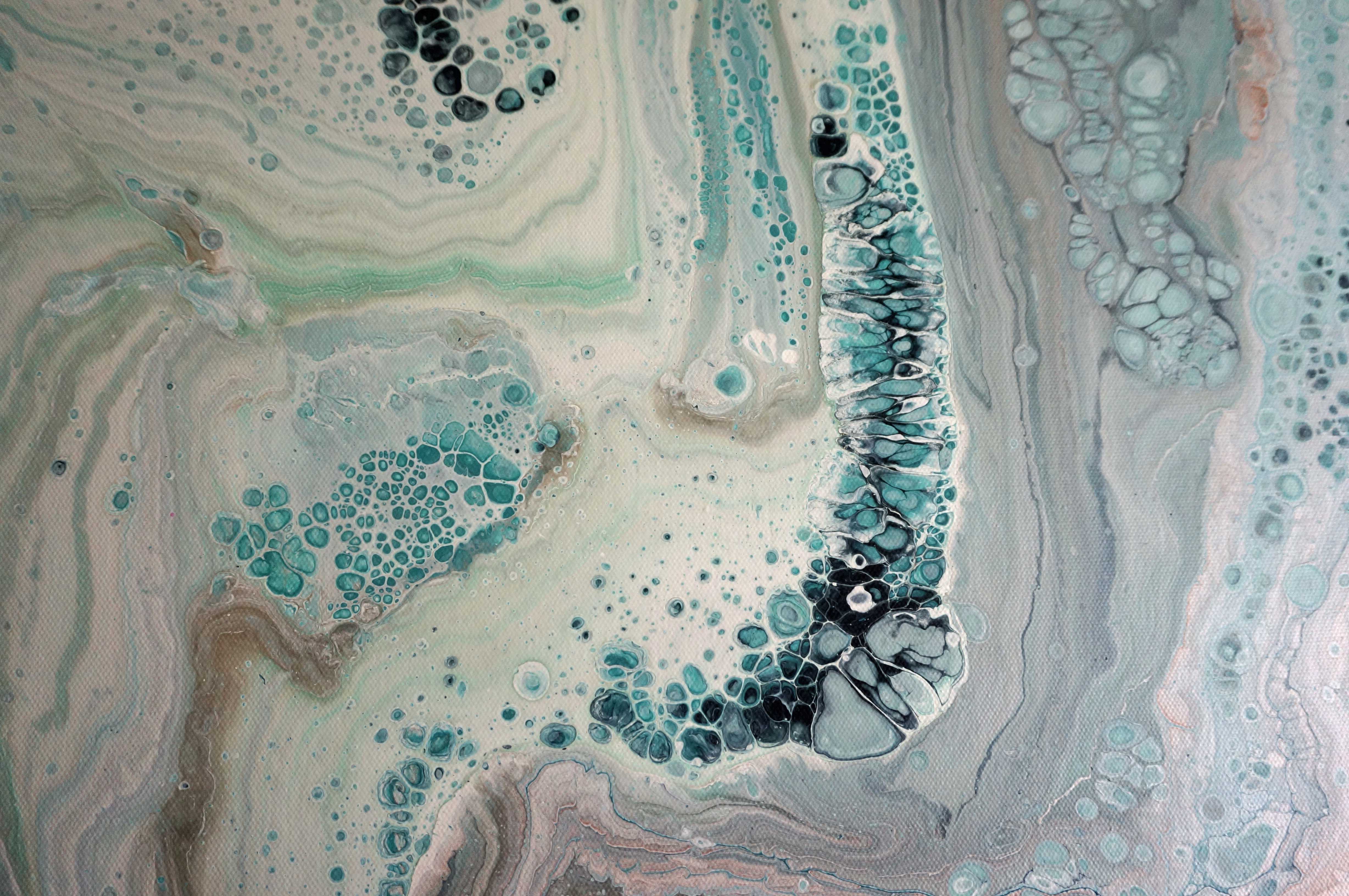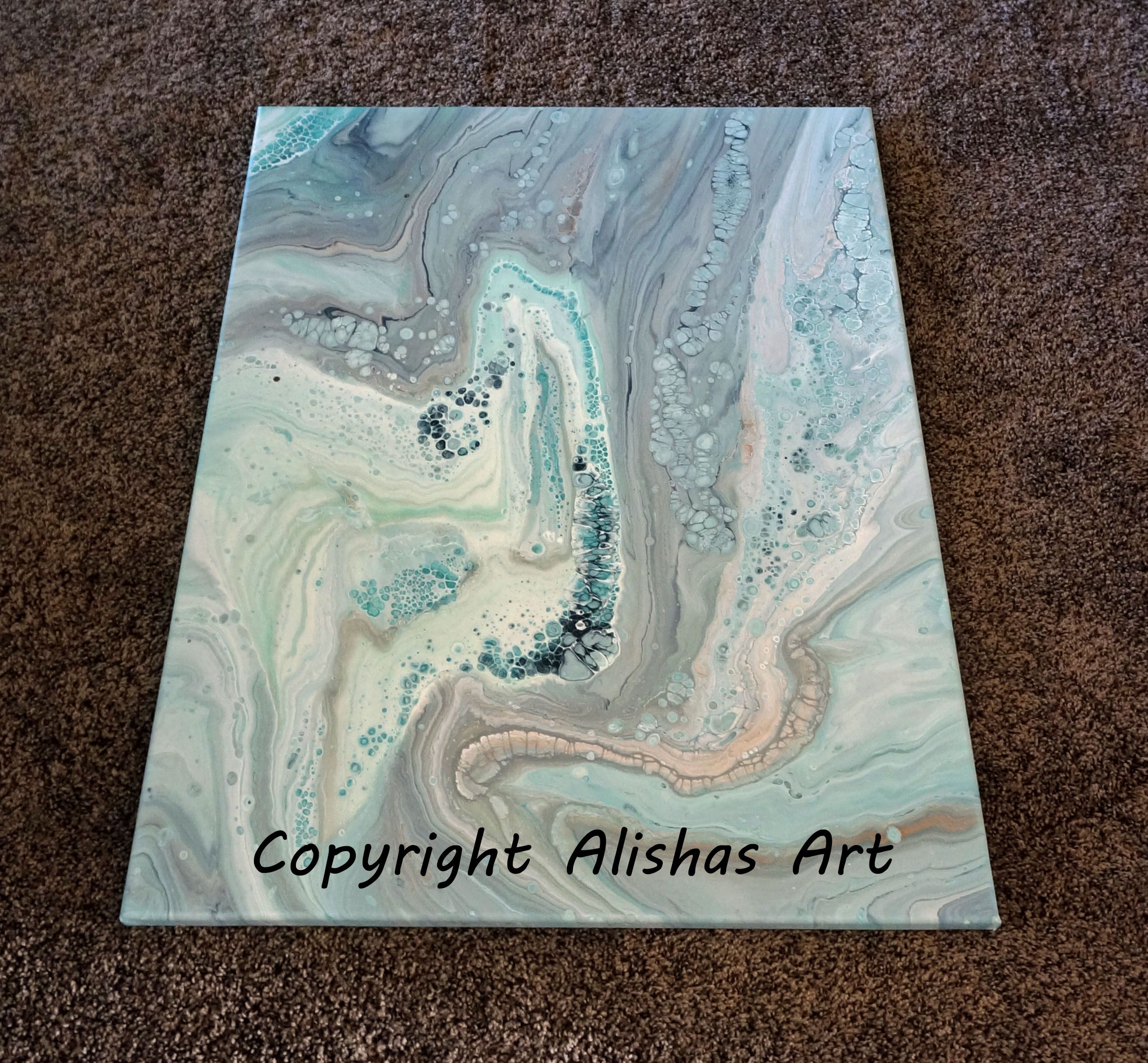 Beautiful fluid acrylic painting! I used alot of white on this one because I wanted it to be bright and cheery! The colors are white, rose gold, silver, ocean breeze, midnight blue, and aqua and the sides are painted to match. This is ready to ship and hang right out of the box! Finished with a semi gloss varnish that is sprayed on for consistency. I have signed and dated the fronts. Certificates of authenticity available on request! Can be done in other colors!