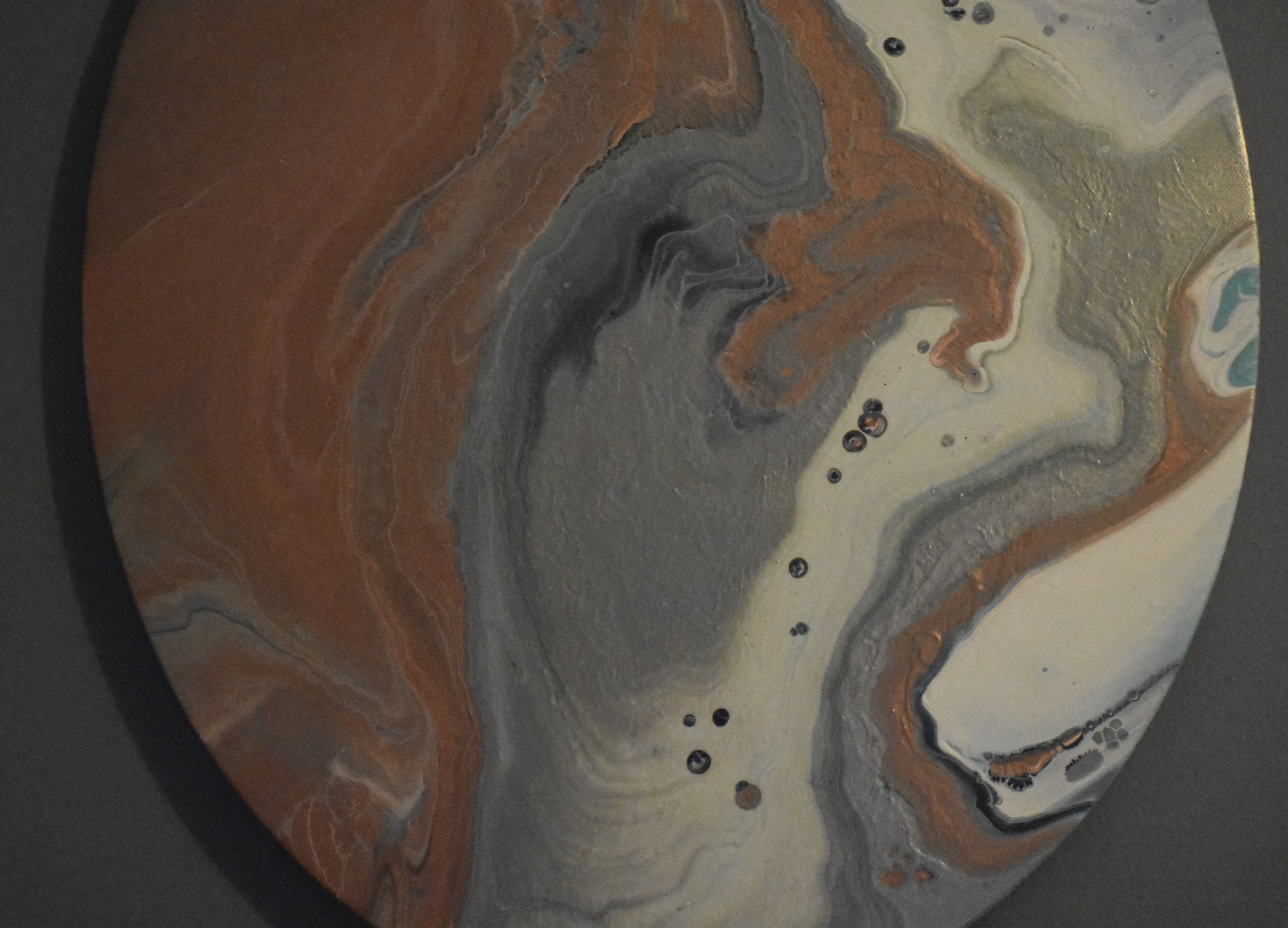 I really love the oval shaped canvases. They are just neat and not seen used very often. They really add character! Fluid acrylic painting done on a master touch oval canvas. Colors are white, midnight blue, rose gold with the sides painted black. I do accept payments with no interest fee. Certificate of authenticity available upon request!