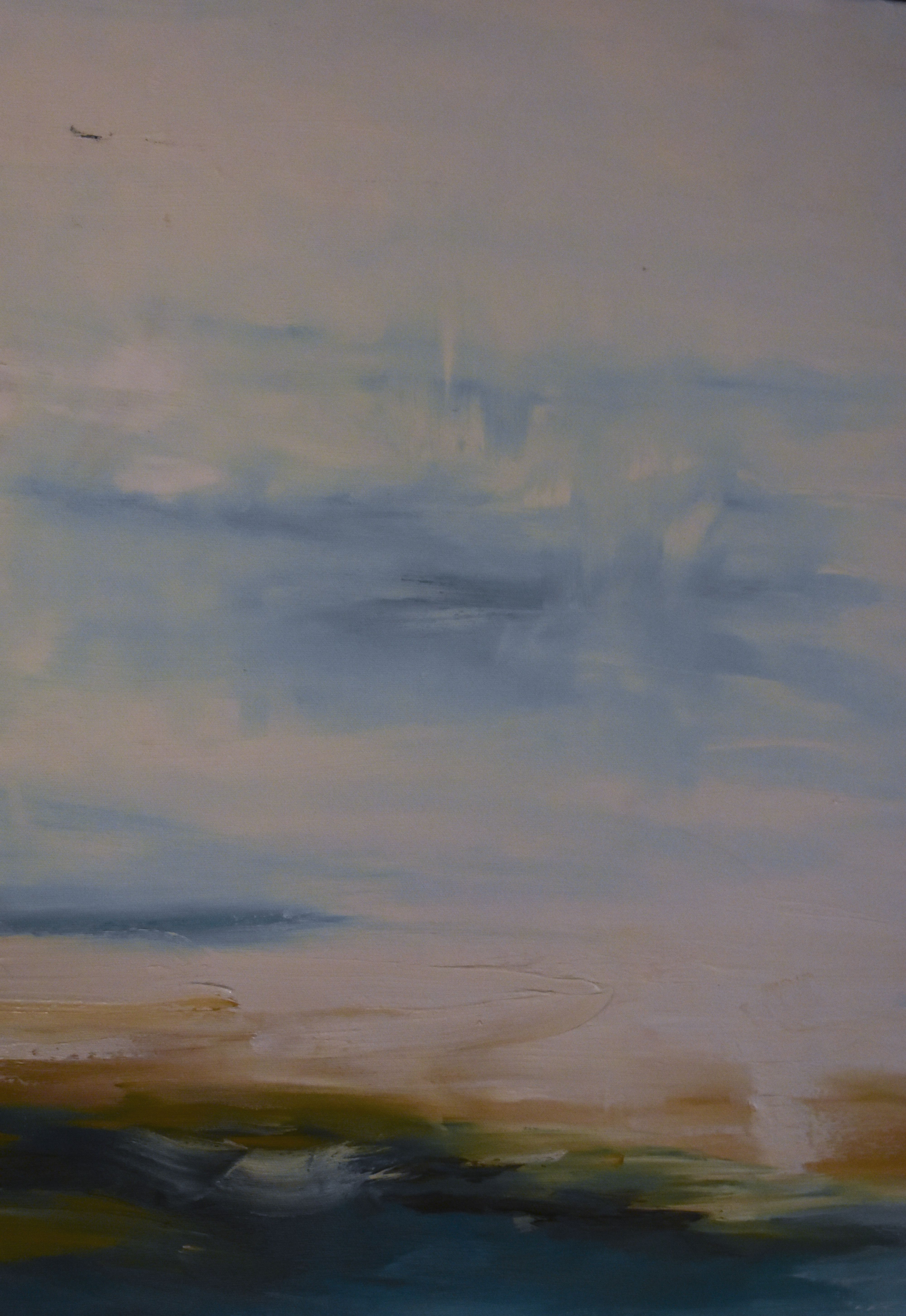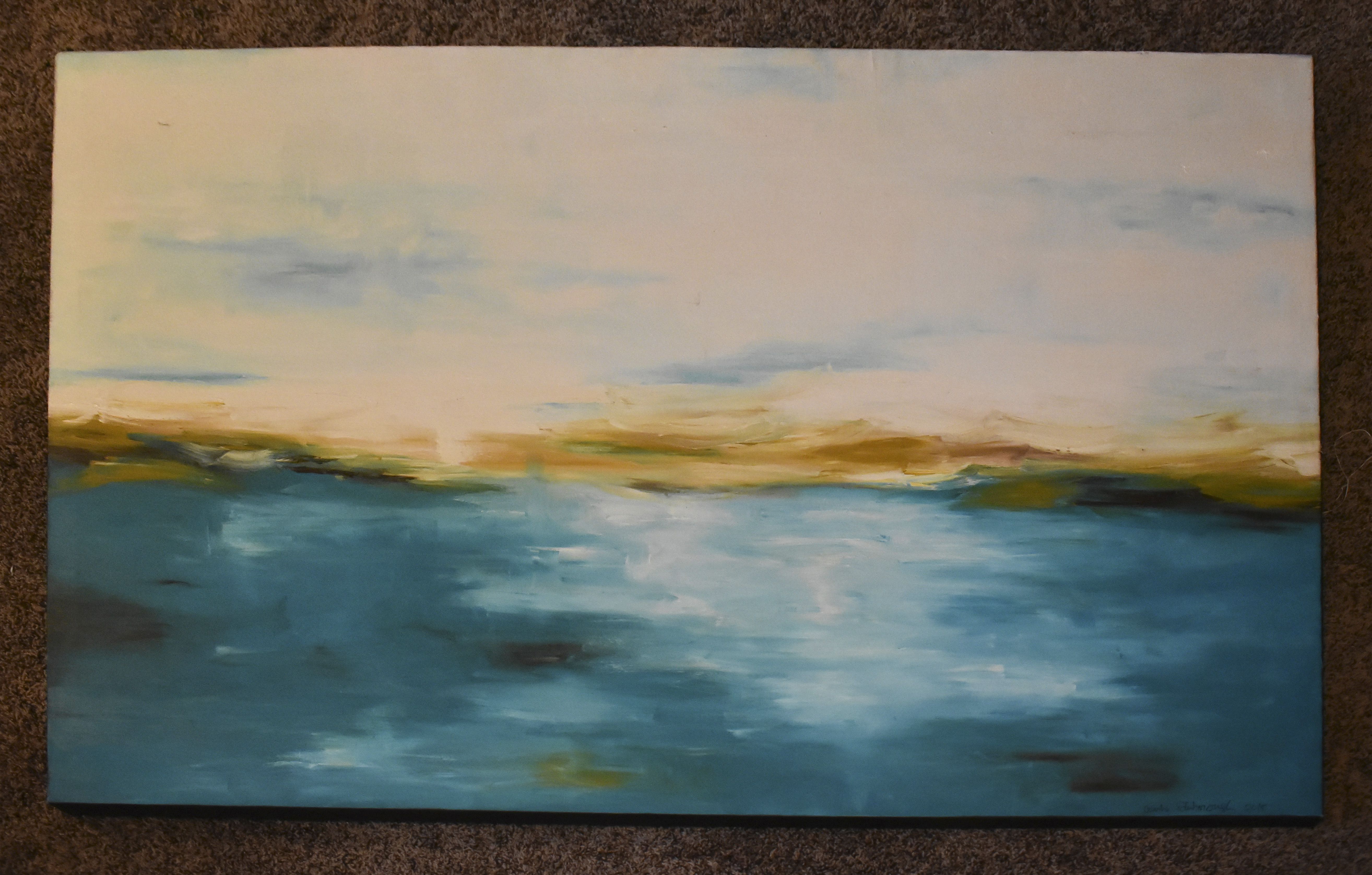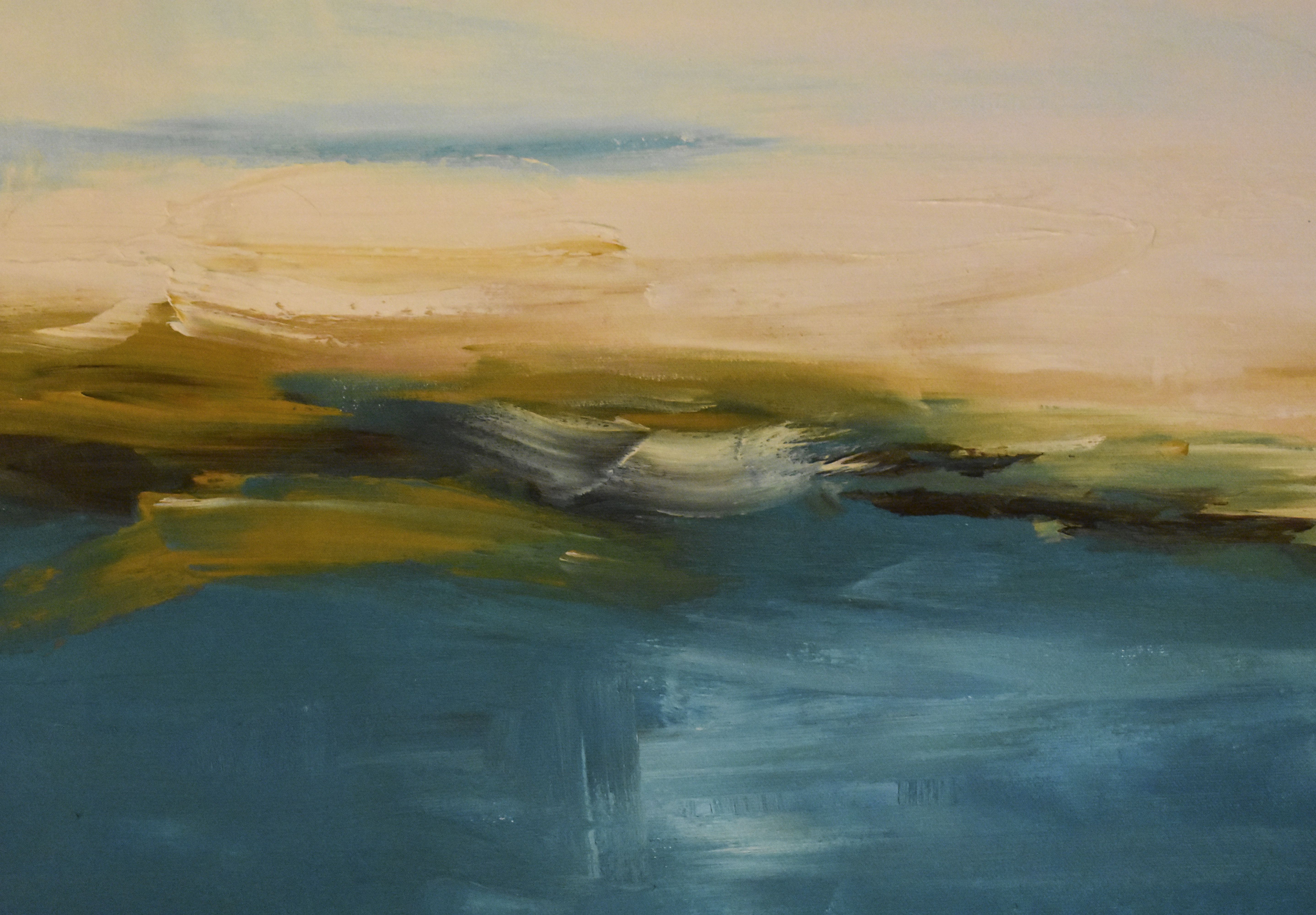 Beautiful abstract landscape oil painting. I used teal, white, yellow ochre, brown and the sides are painted black for that unframed framed look. This painting is stretched tight with the folds of the canvas at the corners. There is some slight textures that are from thick areas of the oil paint. It is ready to ship and will come wired ready to hang! Ask any questions!