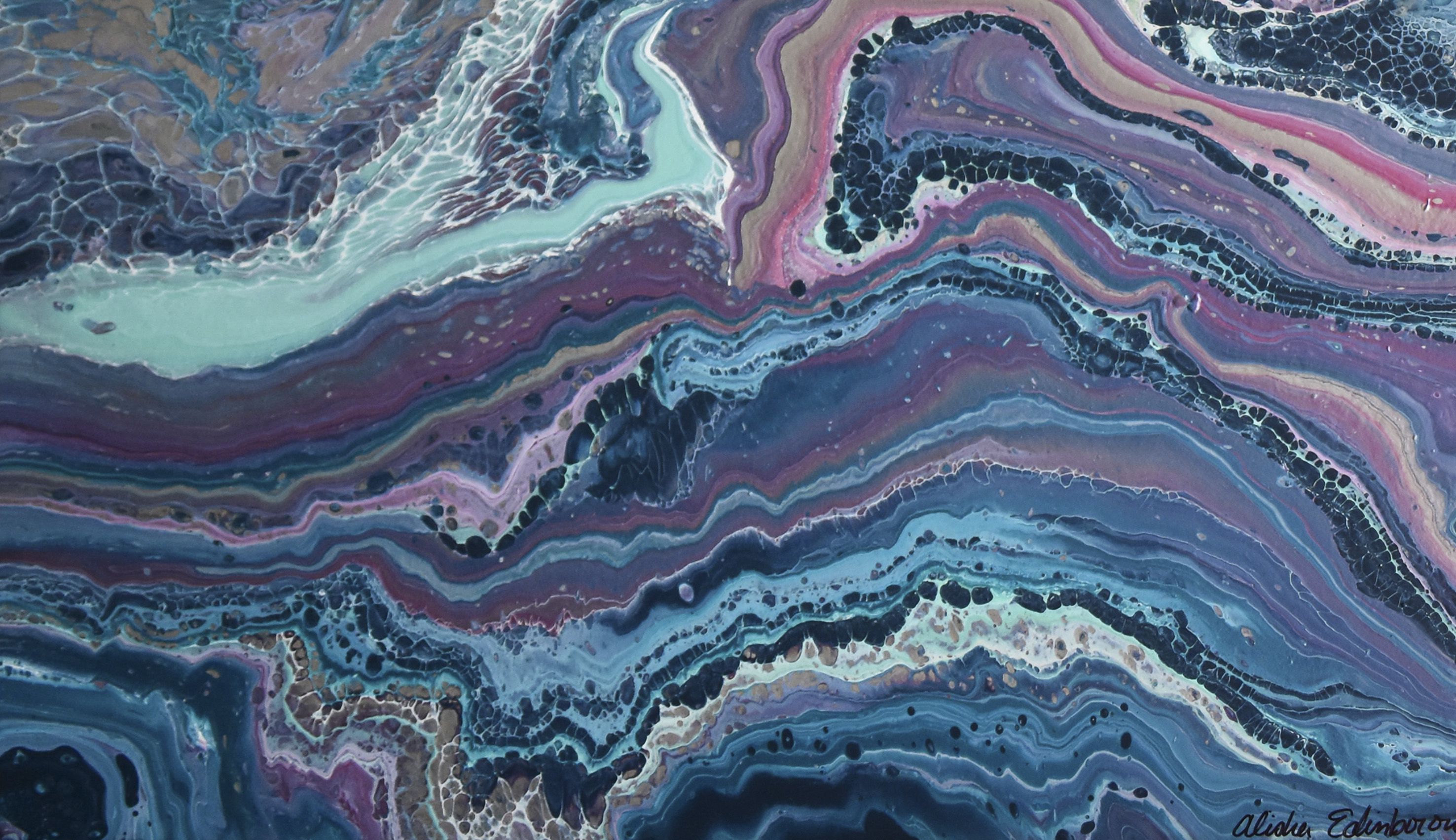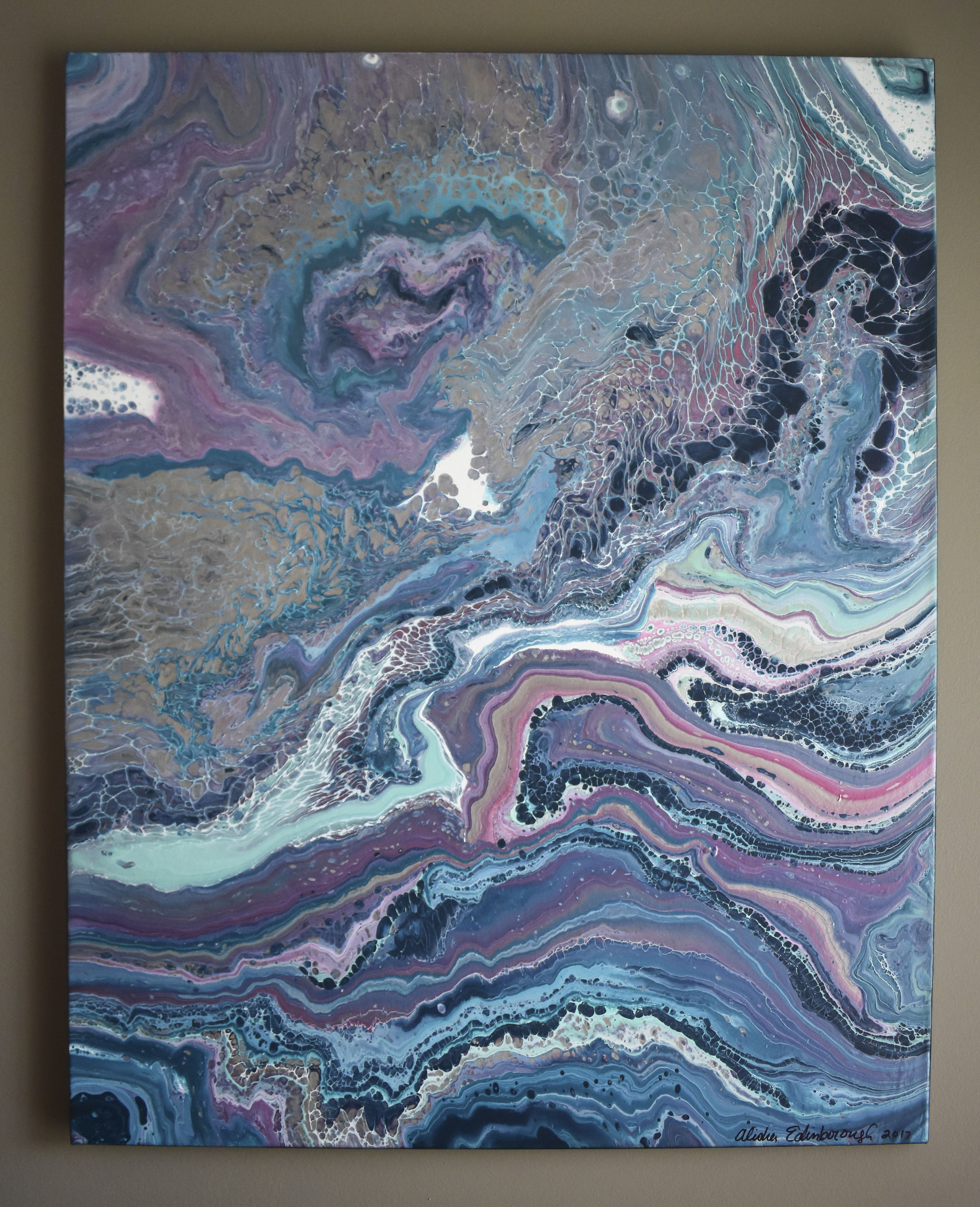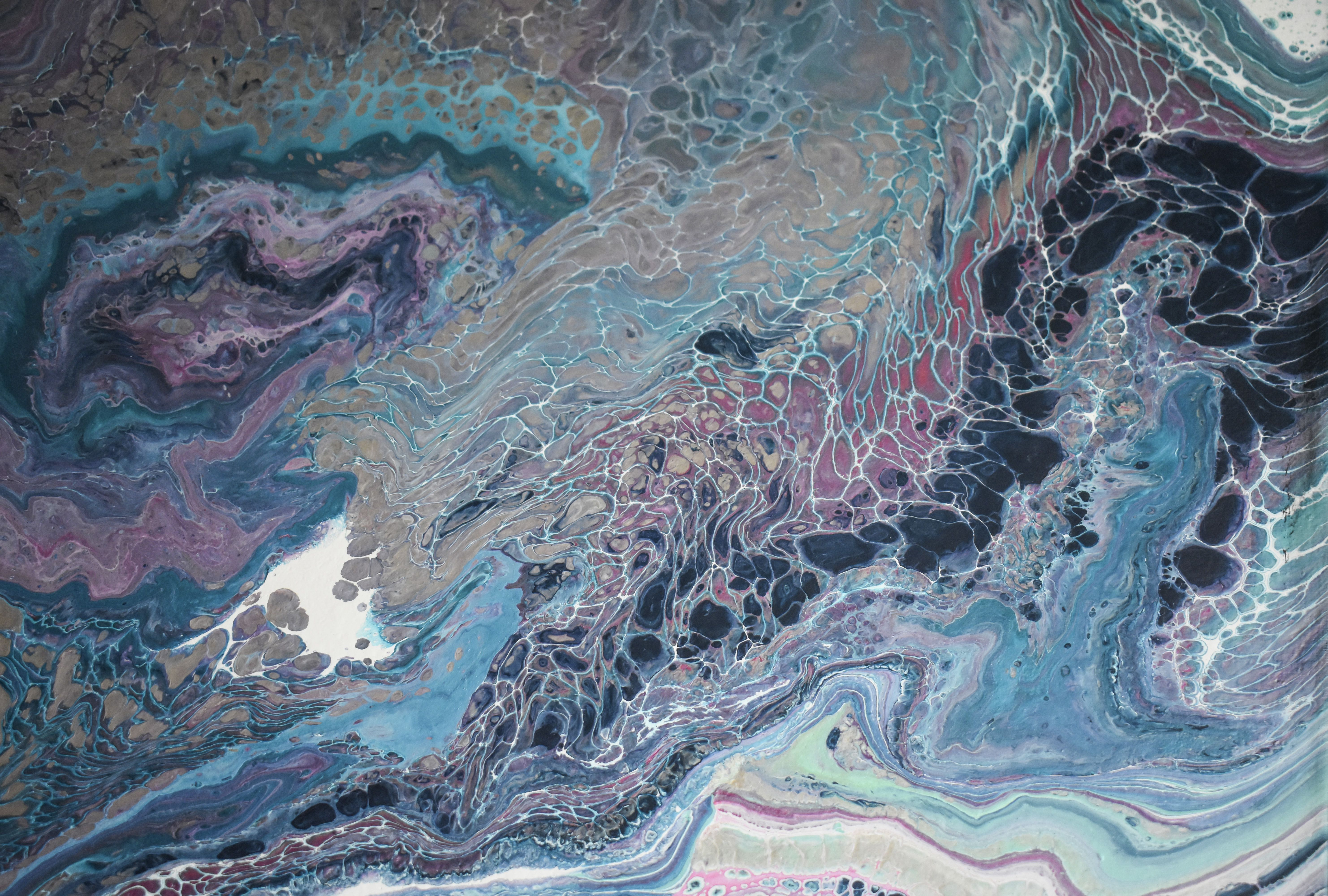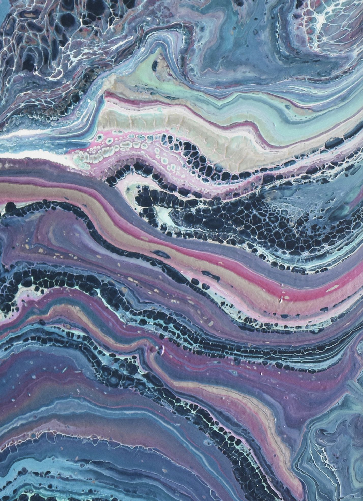 Beautiful fluid acrylic painting! So colorful!! I love the layers in this one, they are stacked so beautiful. I love the navy because it adds some contrast to the colors that make it look textured.