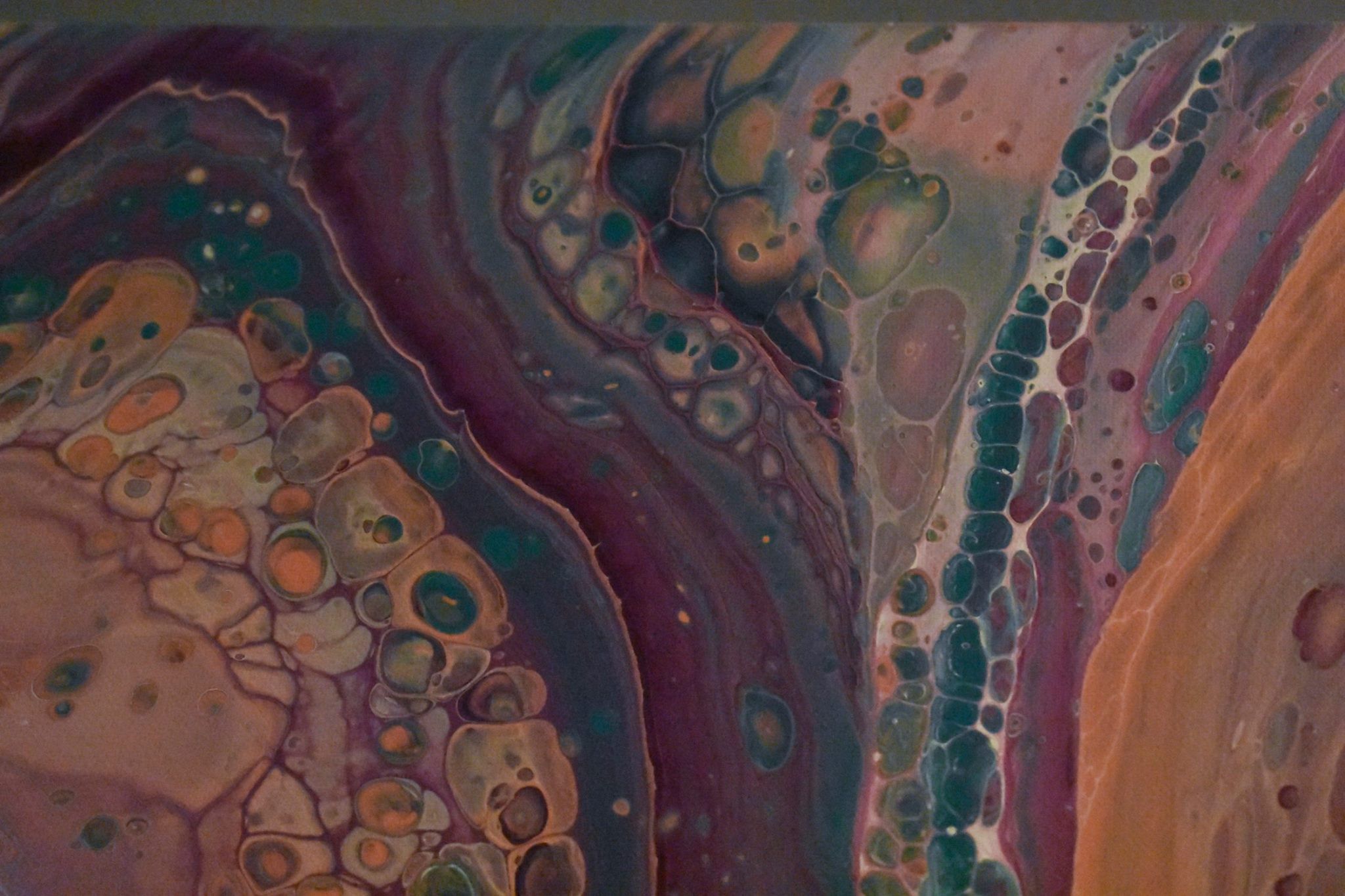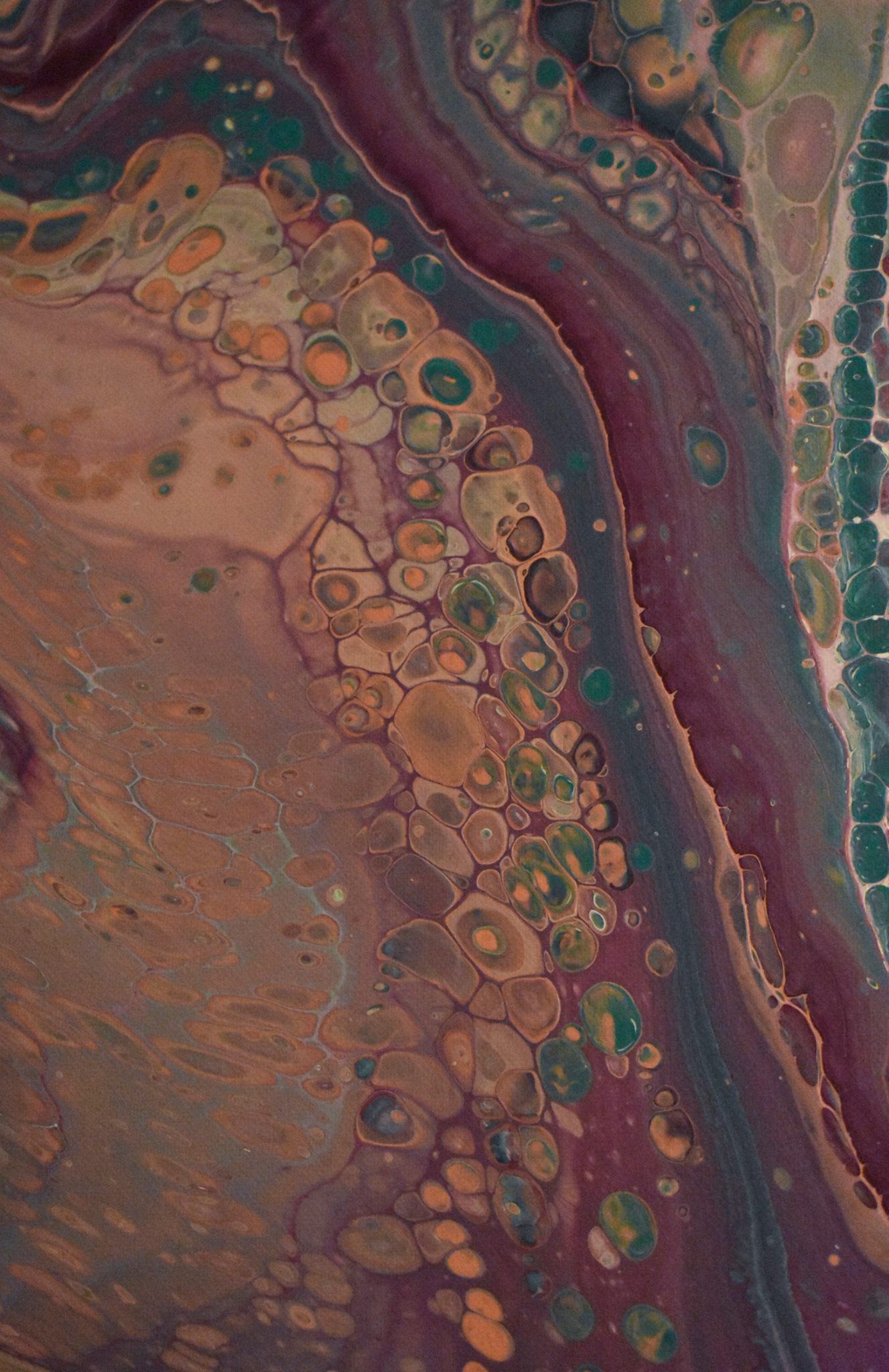 Beautiful fluid acrylic painting! Was just having fun with this one! I mixed several of the colors by hand. I was trying to recreate colors I used in another painting that I couldn't find. Came out quite nice! Love it when I get beautiful paintings. There are alot of really pretty details too. Several colors bubble up into the cells so some of the cells are multi color. I just love it!!!!