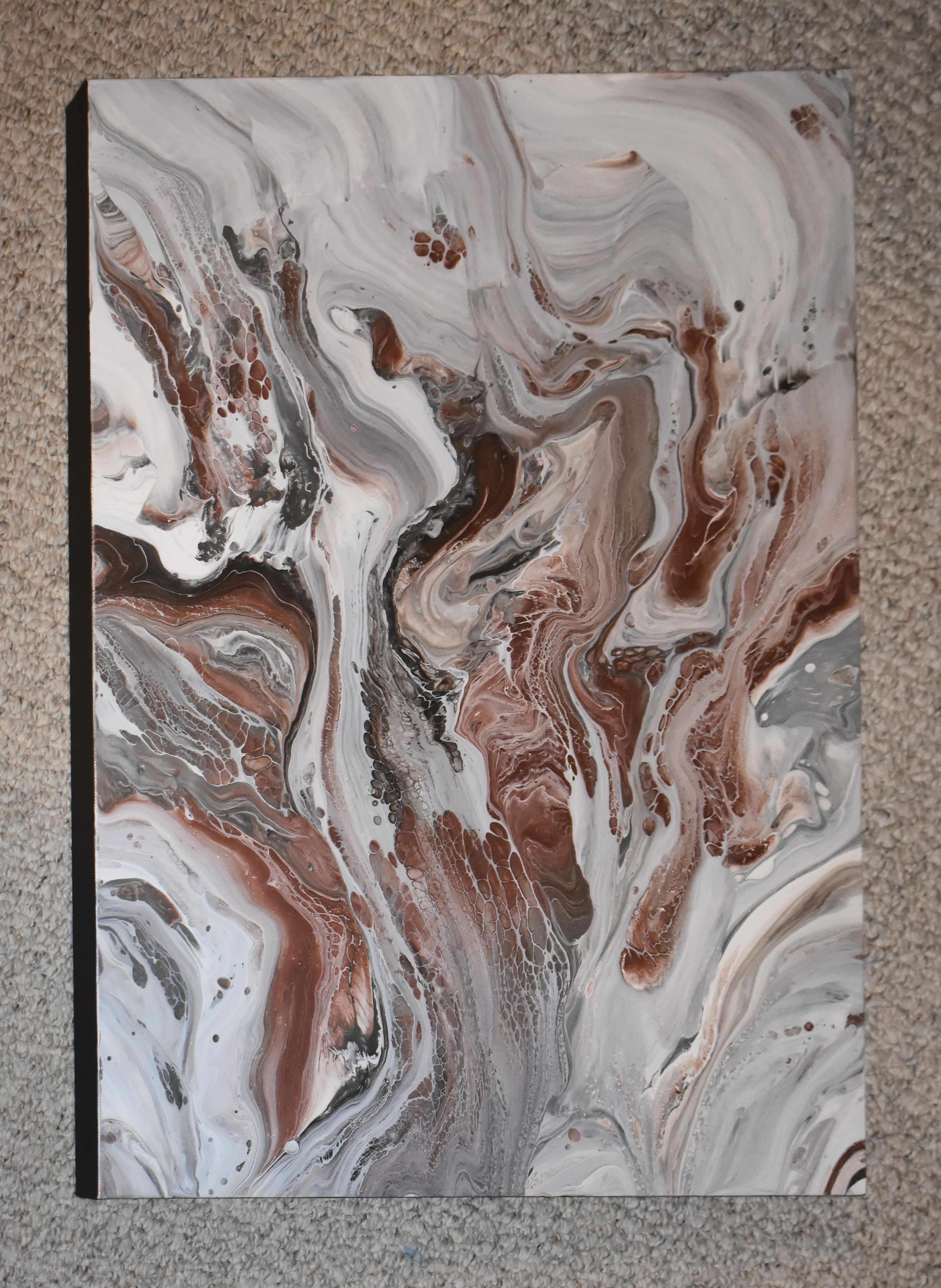 This painting when I poured it and moved the canvas looked awful in my opinion and I was devistated that it didn't come out like I had hoped so I decided to take a pallette knife to it and move the paint around. So I did that and decided to let it dry. Came back to look at it the next day and still wasn't happy with it at all. So a few days maybe a week later I went to put gesso on it and was going to do a new one over top. I put a few strokes of gesso on it and something made me stop and wipe it off. So I cleaned it up and decided to put it away for a while. Came back to it a week or 2 later and I just fell in love with it. I don't know why I didn't like it before that but it is one of my favorites! I know this painting will look amazing in your home too!! This is done in colors white, gray, metallic rose gold, silver and the sides are painted gray. This is ready to ship and hang right out of the box! Finished with a semi gloss varnish that is sprayed on for consistency. I have signed and dated the fronts. Certificates of authenticity available on request! Ready to ship and ready to hang right out of the box.